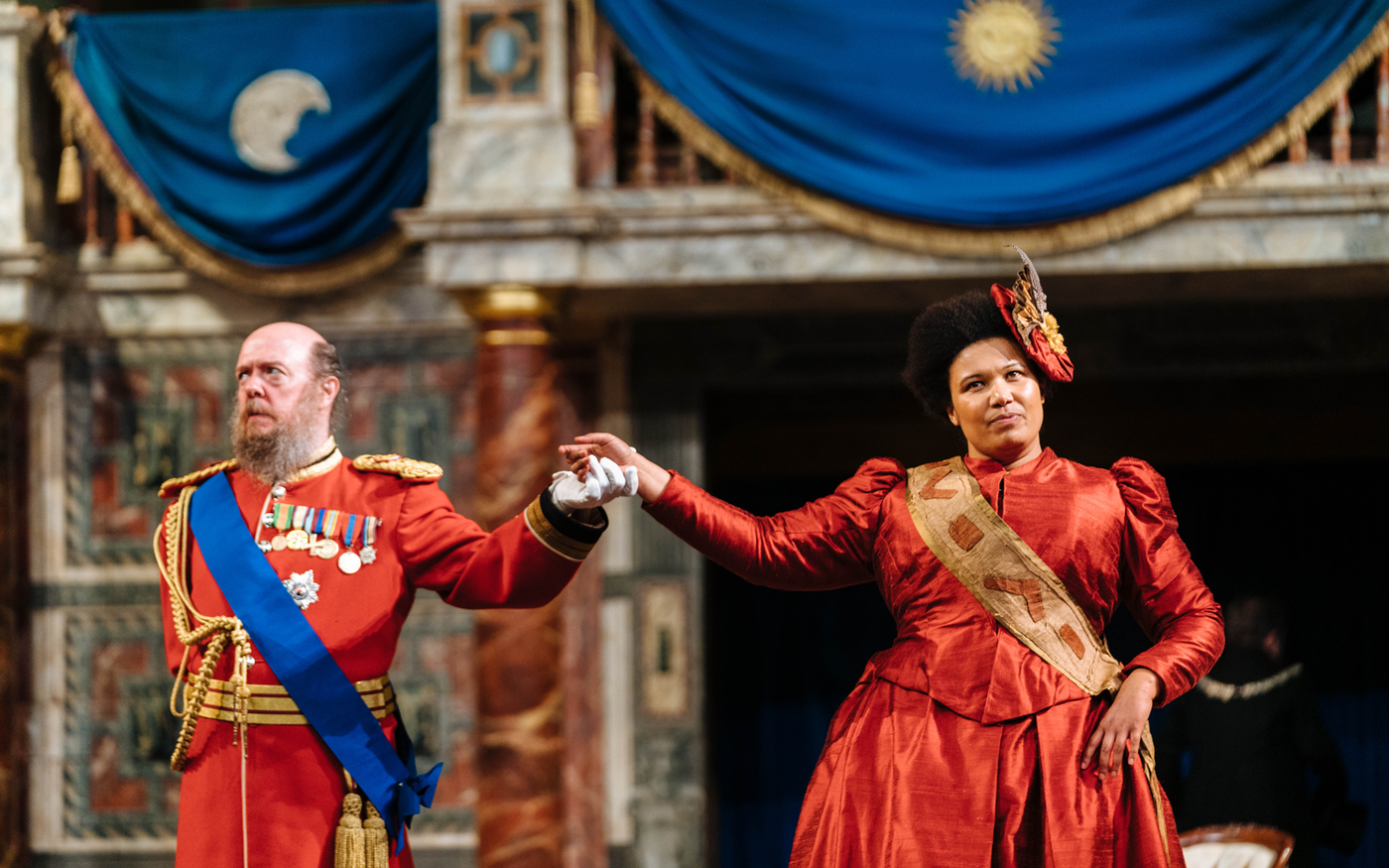 John Cummins as Edward VII and Anne Odeke as Princess Dinubolu in Princess Essex. Photography by Helen Murray.