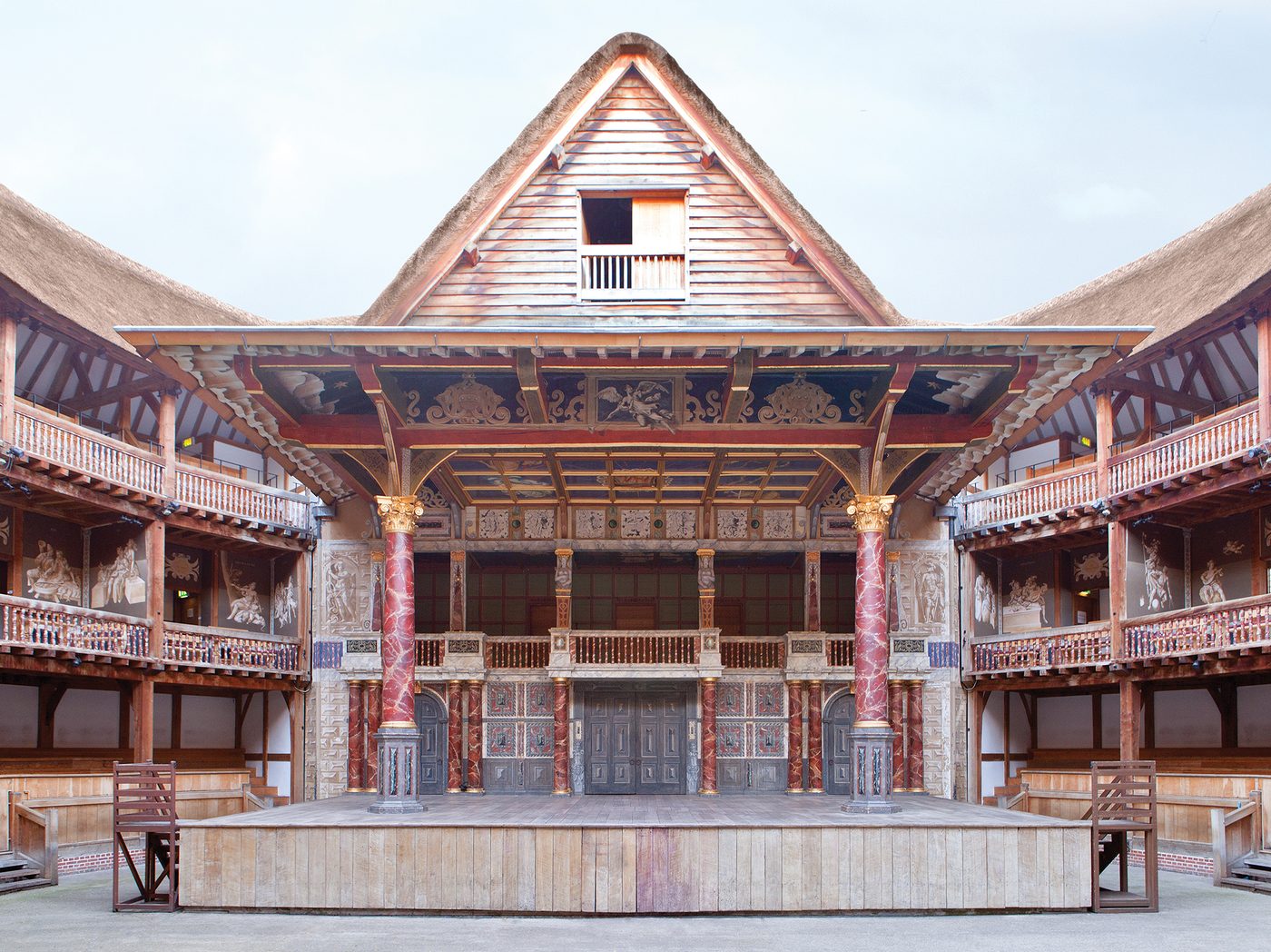 There is a great deal of movement between the three levels of the Globe Theatre stage. Photographer: John Haynes.